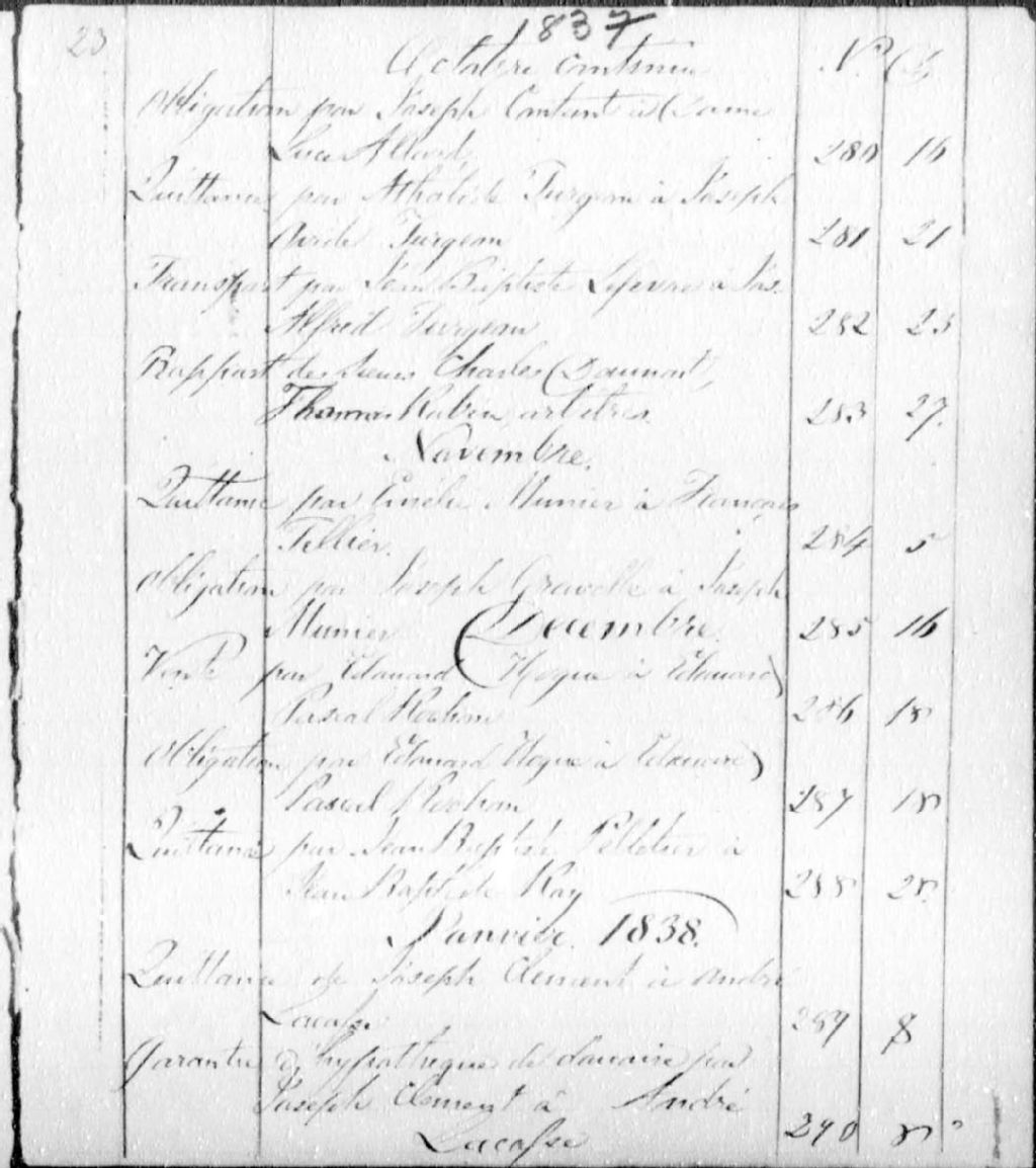 François-Xavier Valade, 1835-1872, Archives nationales à Montréal, Fonds Cour supérieure. District judiciaire de Montréal. Greffes de notaires, (06M,CN601,S387).