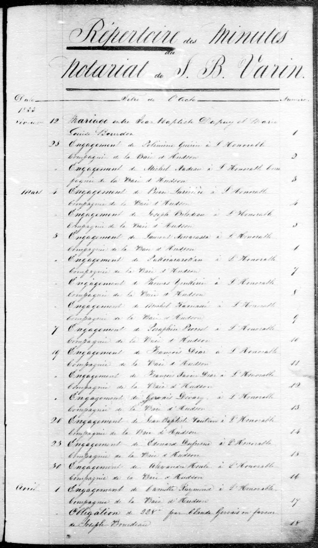 Jean-Baptiste Varin, 1833-1868, Archives nationales à Montréal, Fonds Cour supérieure. District judiciaire de Montréal. Greffes de notaires, (06M,CN601,S394).