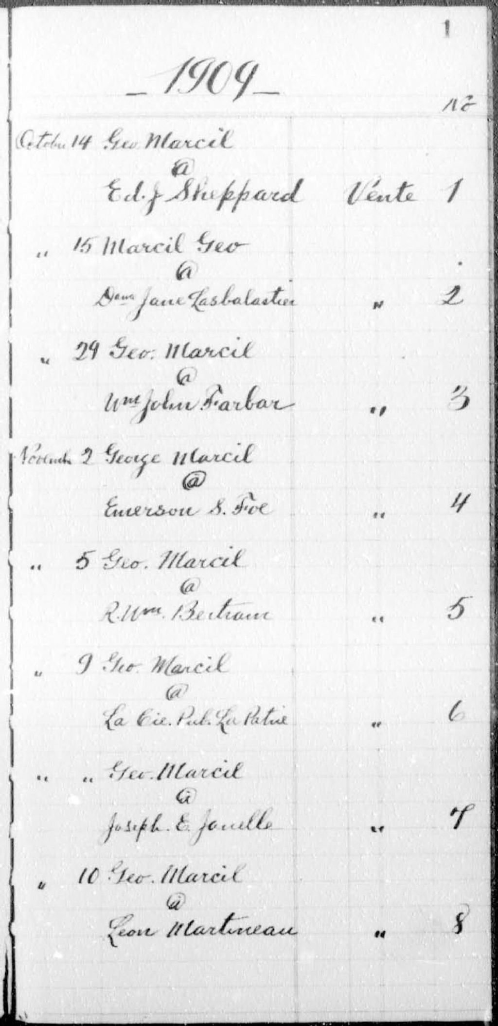 Louis-de-Gonzague-Gédéon Béliveau, 1909-1910, Archives nationales à Montréal, Fonds Cour supérieure. District judiciaire de Montréal. Greffes de notaires, (06M,CN601,S509).