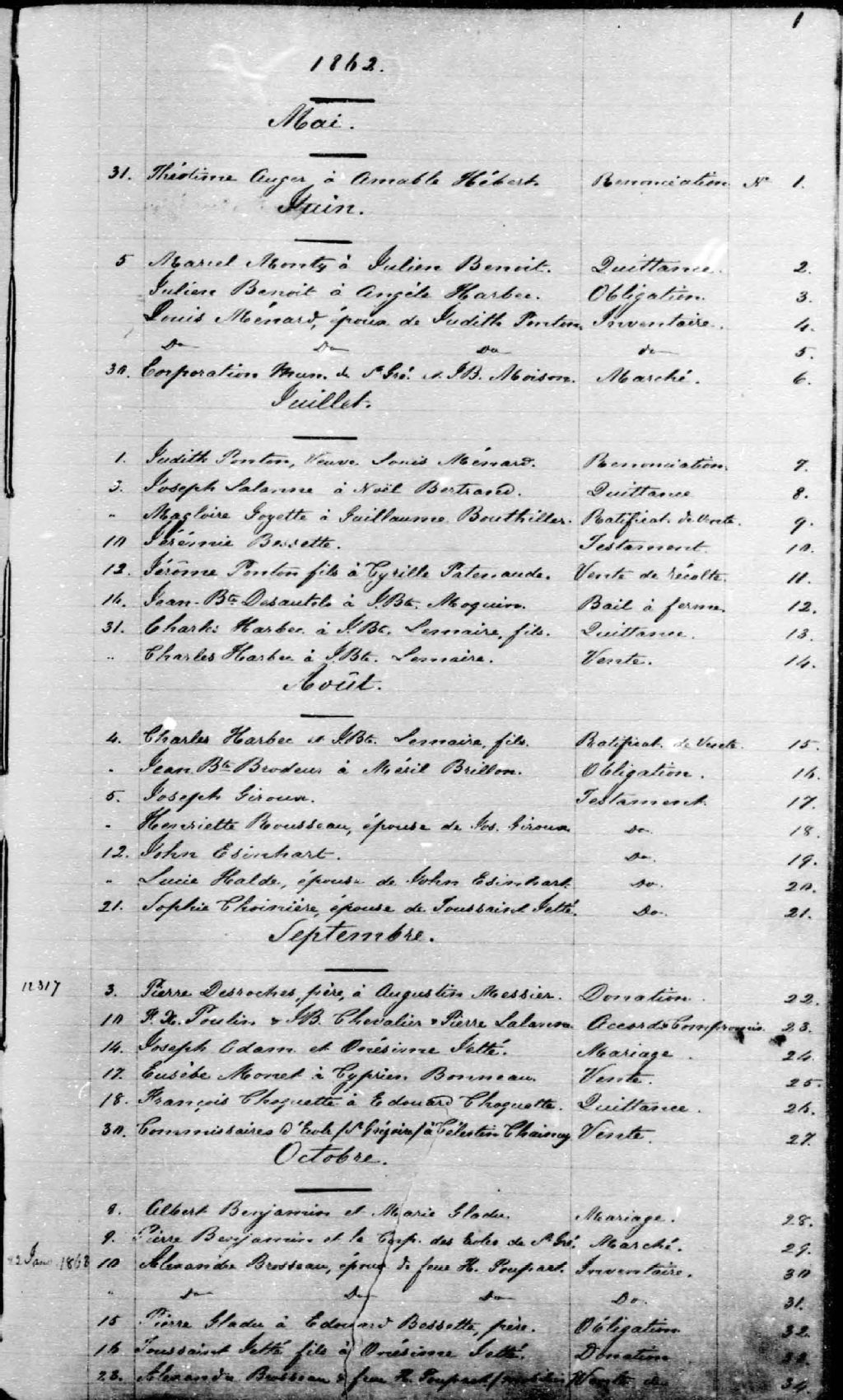 Louis-Agapit Auger, 1862-1878, Archives nationales à Montréal, Fonds Cour supérieure. District judiciaire d'Iberville. Greffes de notaires, (06M,CN604,S4).