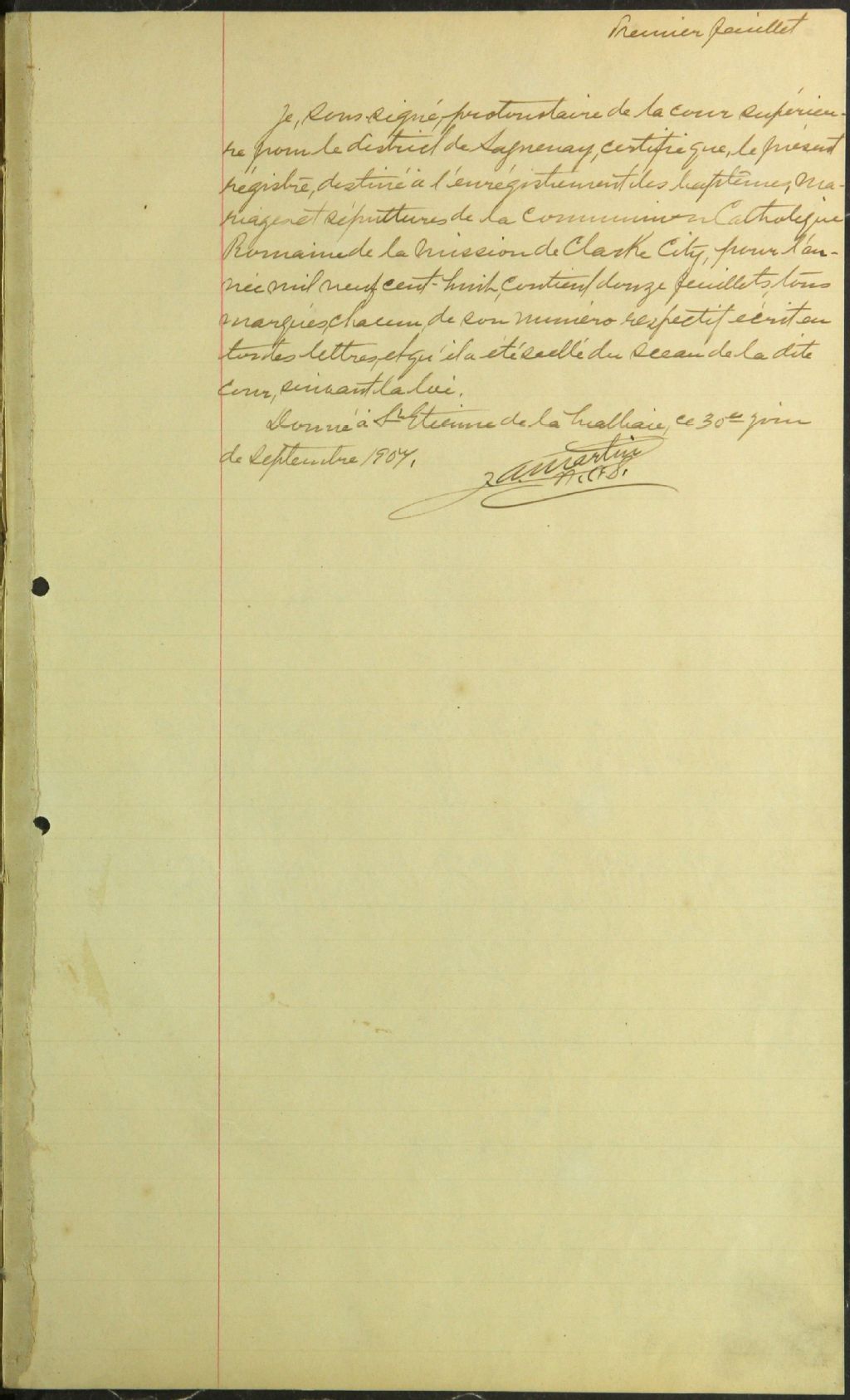 Saint-Cœur-de-Marie de Clarke City, 1908-1922, Archives nationales à Sept-Îles, Fonds Cour supérieure. District judiciaire de Mingan. Etat civil, (09N,CE901,S16).