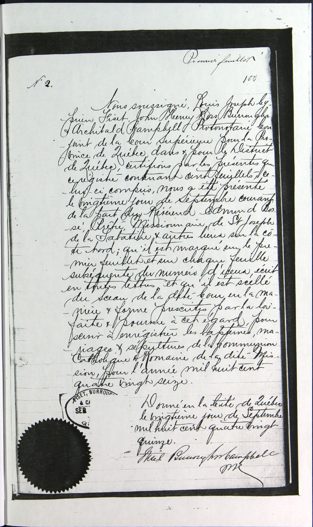 Sainte-Anne-de-Tête-à-la-Baleine, 1896-1910, Archives nationales à Sept-Îles, Fonds Cour supérieure. District judiciaire de Mingan. Etat civil, (09N,CE901,S17).
