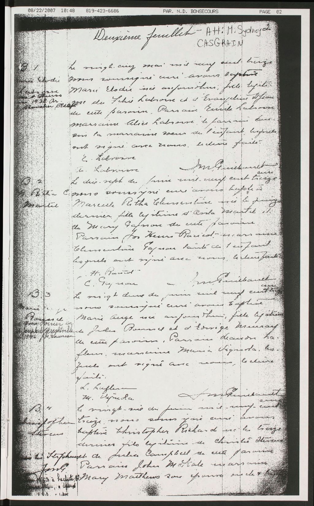 Saint-Fidèle-de-Fassett, 1913-1921, Archives nationales à Gatineau, Fonds Cour supérieure. District judiciaire de Hull. État civil, (07H,CE701,S70).