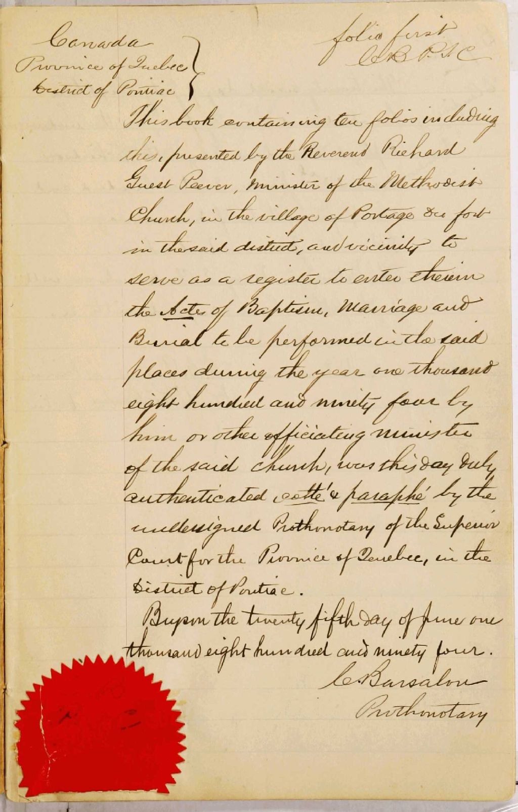 Portage-du-Fort Methodist Church, 1894-1921, Archives nationales à Gatineau, Fonds Cour supérieure. District judiciaire de Pontiac. État civil, (07H,CE702,S25).