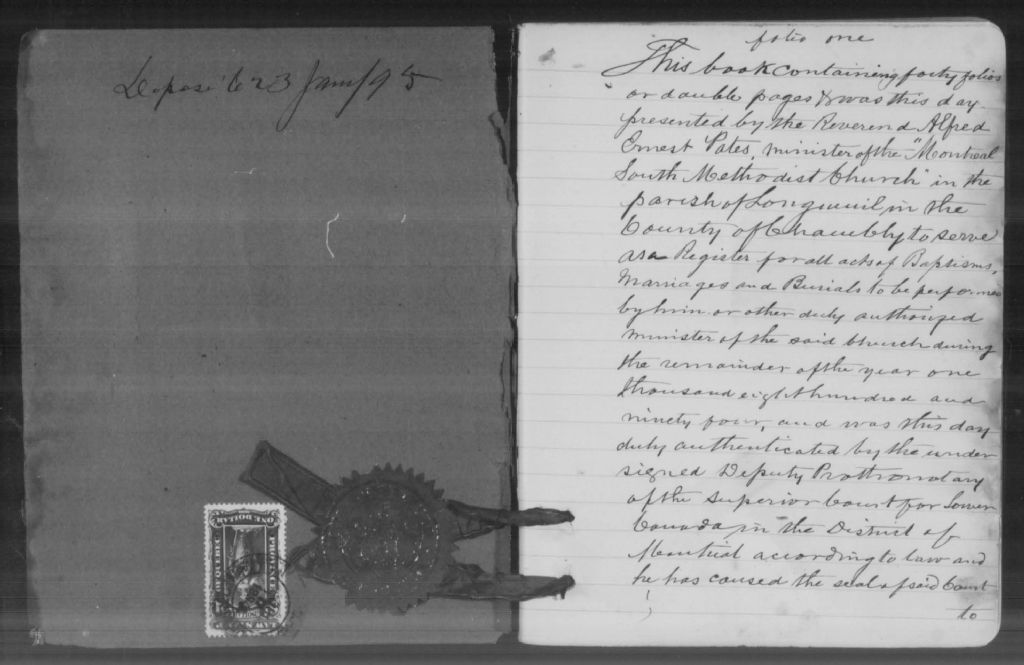 Longueuil Montreal South Methodist Church, 1894-1917, 1920-1922, Archives nationales à Montréal, Fonds Cour supérieure. District judiciaire de Montréal. État civil, (06M,CE601,S193).