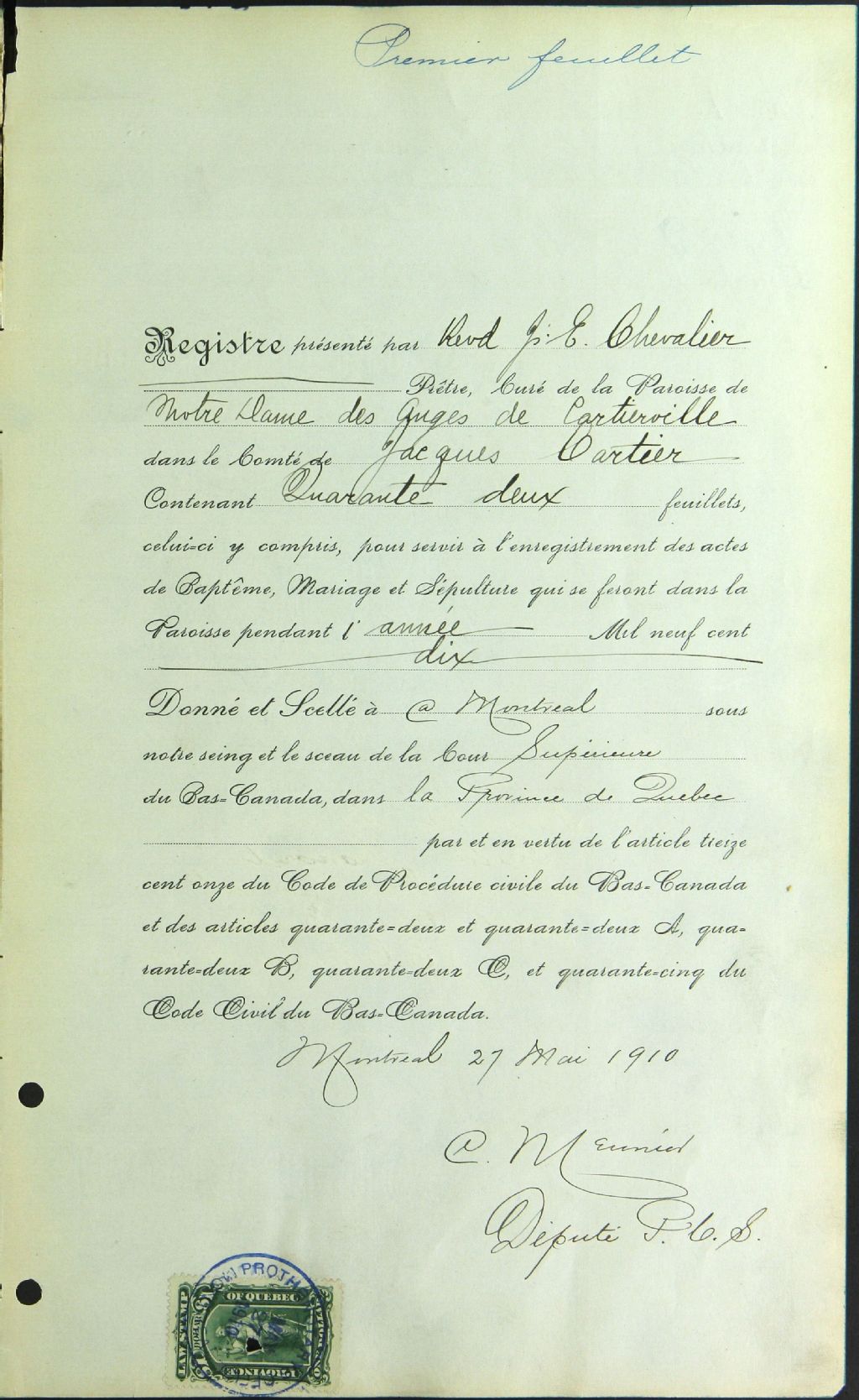 Notre-Dame-des-Anges-de-Cartierville, 1910-1922, Archives nationales à Montréal, Fonds Cour supérieure. District judiciaire de Montréal. État civil, (06M,CE601,S293).