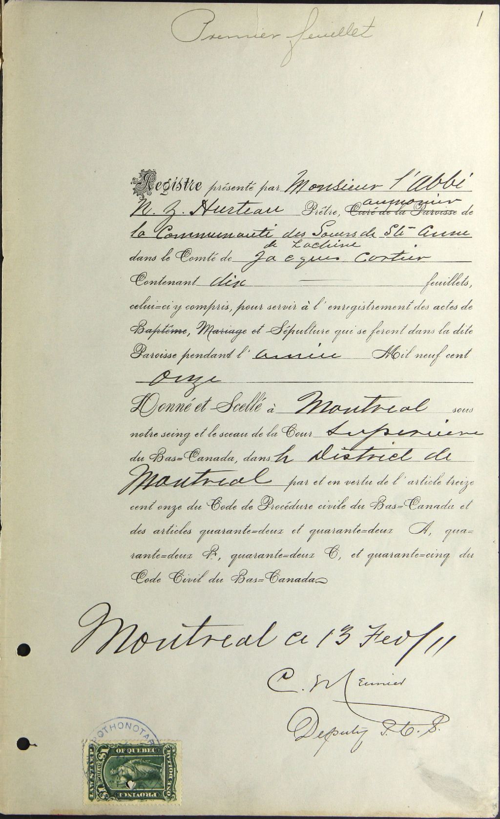 Congrégation des Soeurs de Sainte-Anne, 1911-1921, Archives nationales à Montréal, Fonds Cour supérieure. District judiciaire de Montréal. État civil, (06M,CE601,S315).