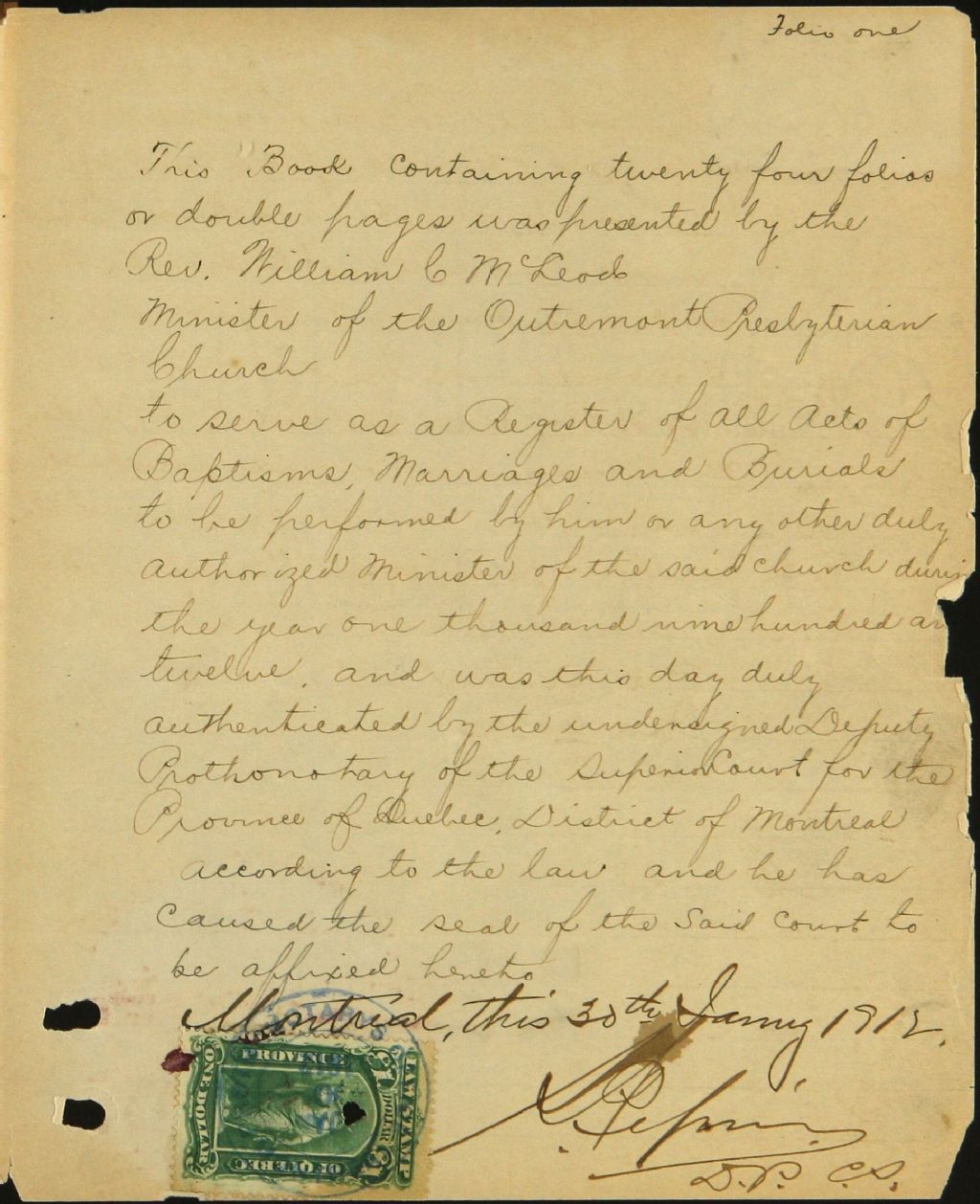 Outremont Presbyterian Church, 1912-1922, Archives nationales à Montréal, Fonds Cour supérieure. District judiciaire de Montréal. État civil, (06M,CE601,S316).