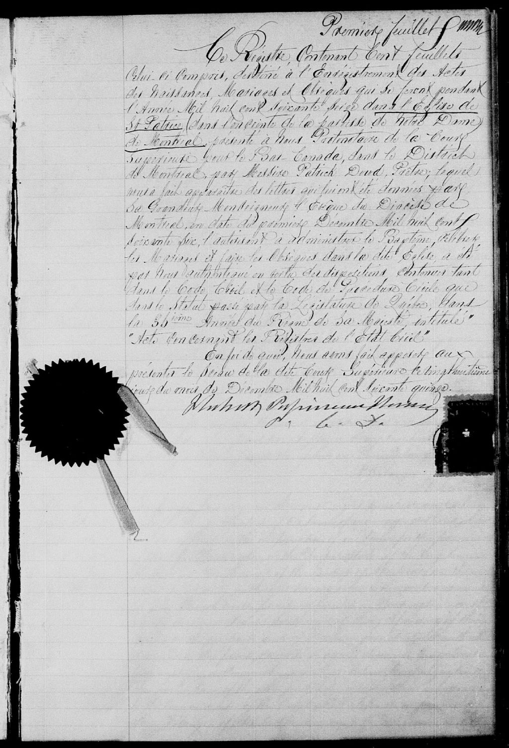Saint-Patrice, 1859-1921, Archives nationales à Montréal, Fonds Cour supérieure. District judiciaire de Montréal. État civil, (06M,CE601,S52).