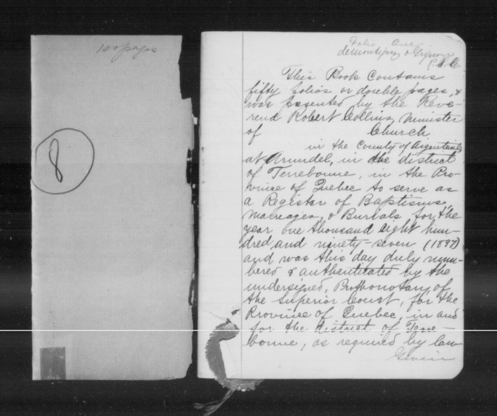 Holiness Movement Church, 1897-1919, Archives nationales à Montréal, Fonds Cour supérieure. District judiciaire de Terrebonne. État civil, (06M,CE606,S26).