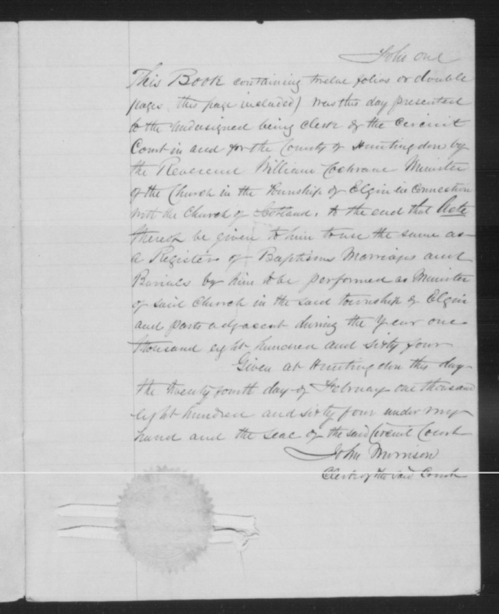 Athelstane and Elgin Presbyterian Church, 1864-1921, Archives nationales à Montréal, Fonds Cour supérieure. District judiciaire de Beauharnois. État civil, (06M,CE607,S48).