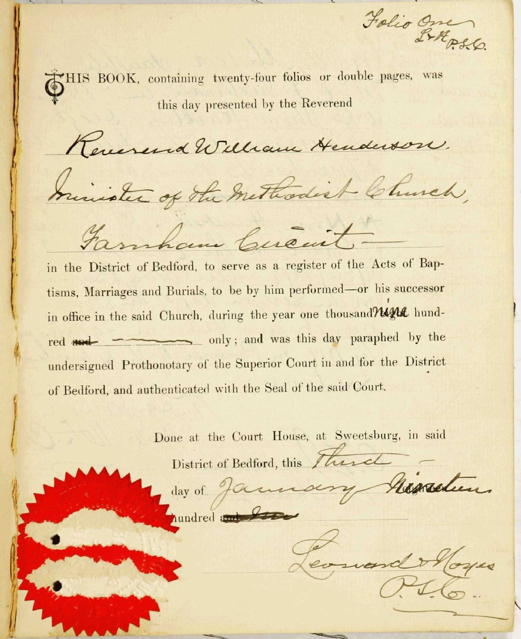 Farnham United Methodist Church, 1900-1921, Archives nationales à Montréal, Fonds Cour supérieure. District judiciaire de Bedford. État civil, (06M,CE611,S70).