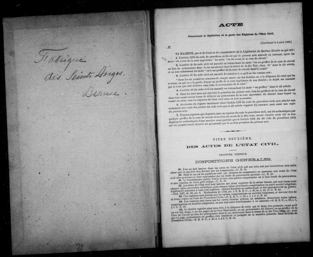Saints-Anges, 1875-1922, Archives nationales à Québec, Fonds Cour supérieure. District judiciaire de Beauce. État civil, (03Q,CE306,S2).