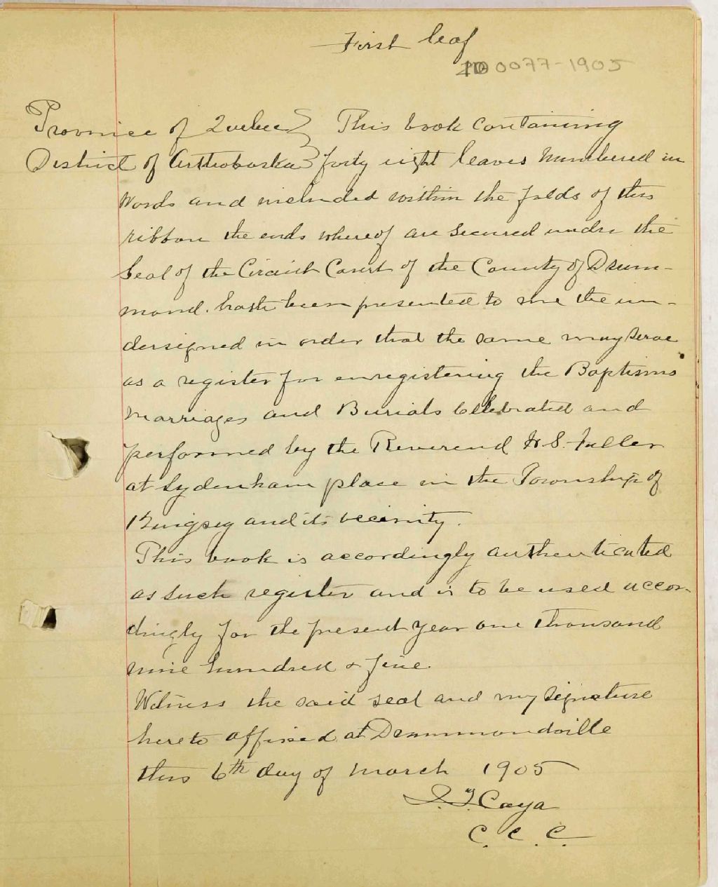 Saint Paul's, 1905-1920, Archives nationales à Trois-Rivières, Fonds Cour supérieure. District judiciaire de Drummond. État civil, (04T,CE403,S29).