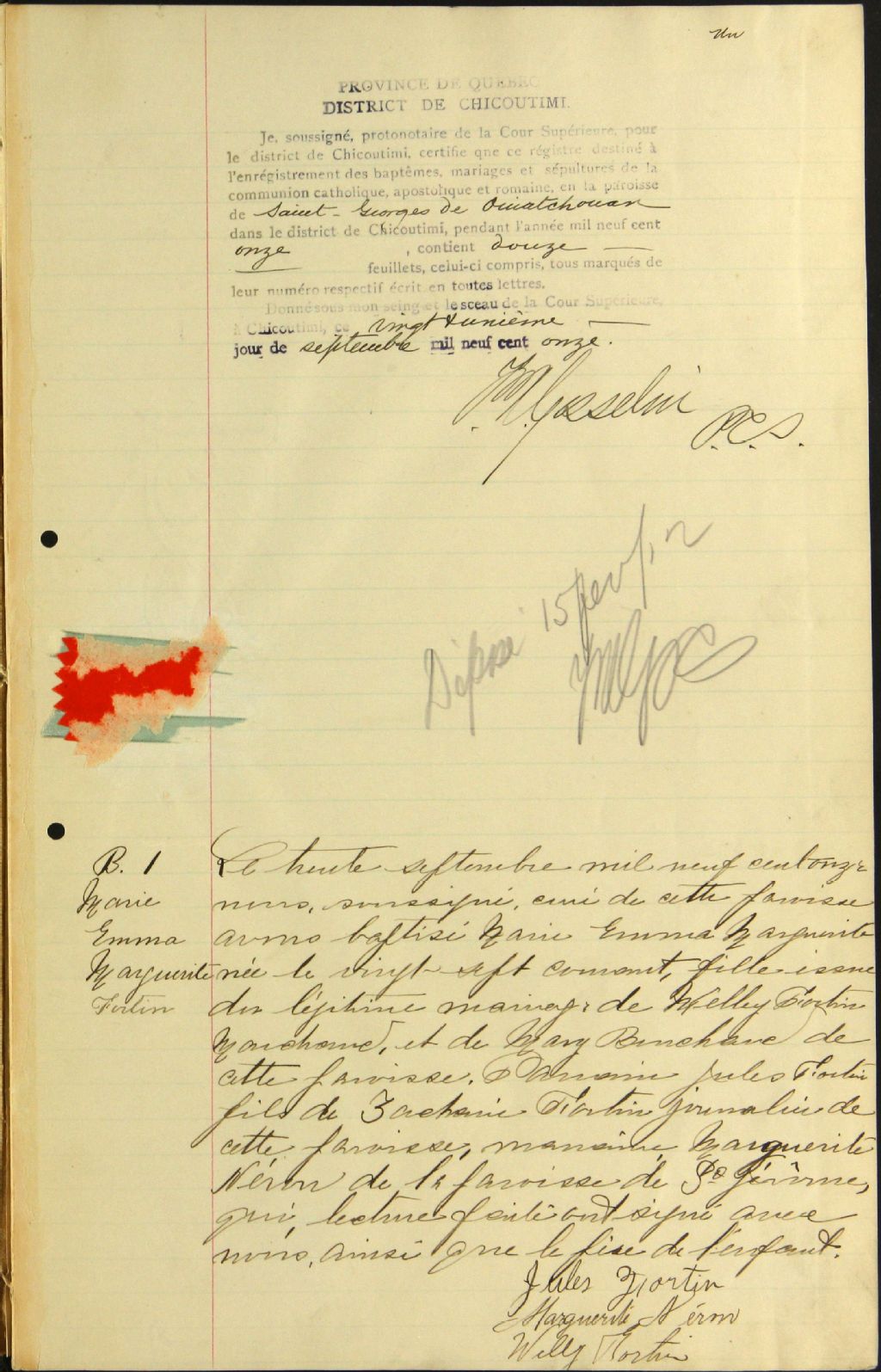 Saint-Georges de Ouiatchouan, 1911-1922, Archives nationales à Saguenay, Fonds Cour supérieure. District judiciaire de Roberval. État civil, (02C,CE202,S25).