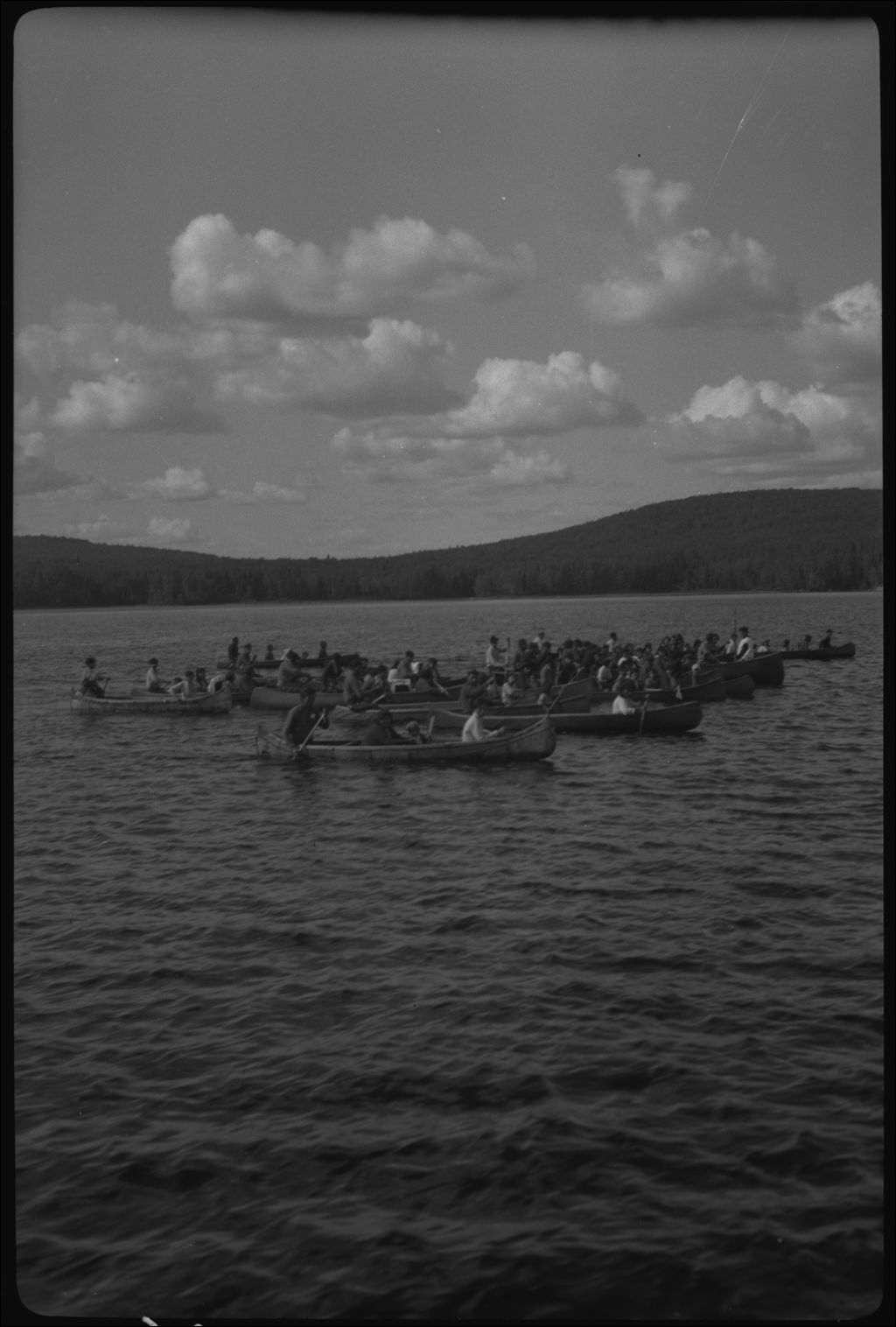 Procession en canot vers le cimetière. Réserve indienne de Manouane, 1947, Archives nationales à Québec, Fonds Ministère de la Culture et des Communications, (03Q,E6,S7,SS1,D2,P92401), J. Armand Tremblay.