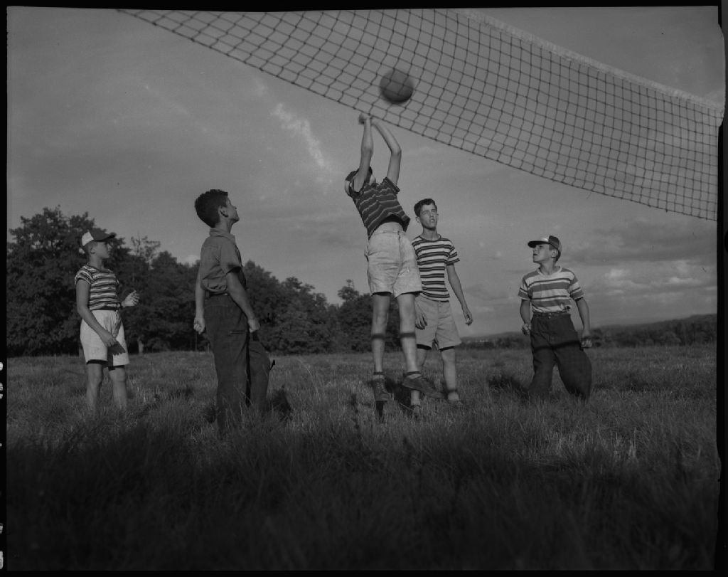 Préventorium, Ligue anti-tuberculeuse de Québec. Maison principale située au 3001, chemin Saint-Louis. Les enfants aux jeux, 1952, Archives nationales à Québec, Fonds Ministère de la Culture et des Communications, (03Q,E6,S7,SS1,D2,P92500), Neuville Bazin.