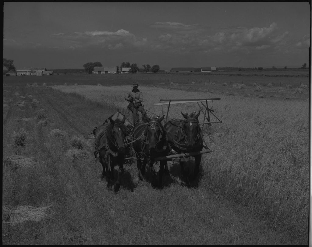Moisson à trois chevaux chez Robert Paris. Parisville, comté Lotbinière.