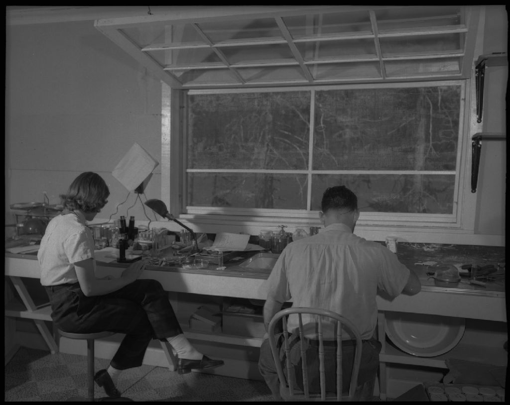 Laboratoire de biologie au Lac Jacques-Cartier dans le Parc des Laurentides, 1952, Archives nationales à Québec, Fonds Ministère de la Culture et des Communications, (03Q,E6,S7,SS1,D2,P94694), Gustave Bédard.