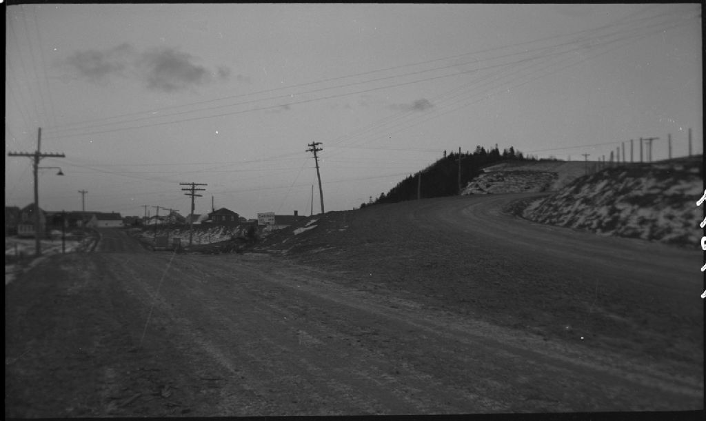 Intersection des routes 6 et 6-A, à gauche : route 6 allant vers Petite-Rivière-au-Renard, à droite : route 6A allant vers le village de Rivière-au-Renard, comté de Gaspé-Sud