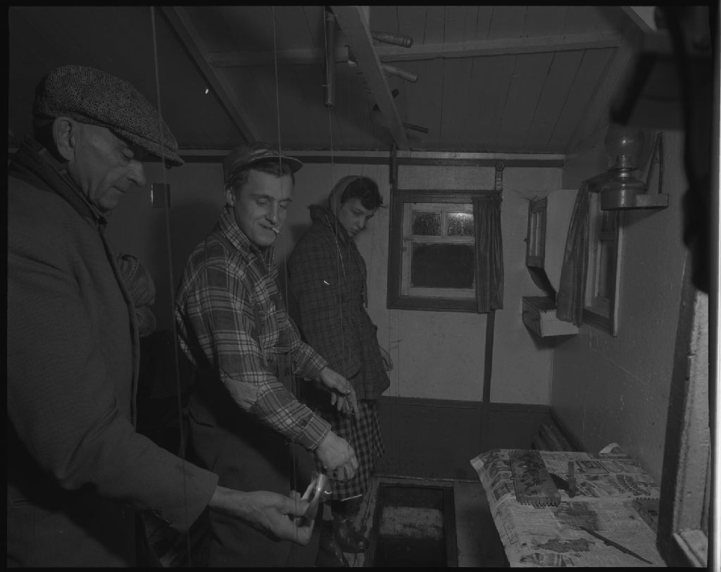 Pêche à la petite morue, étiquettage, pose de cabanes, etc