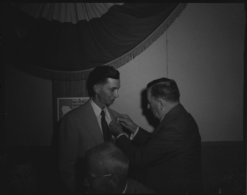[Maurice Duplessis remet une médaille], [1953?], Archives nationales à Québec, Fonds Ministère de la Culture et des Communications, (03Q,E6,S7,SS1,D2,P96529), Photographe non identifié.