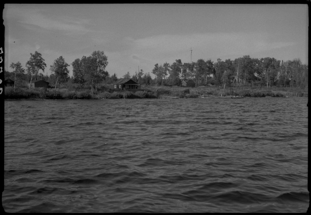 Longitude 65 degré, 04',00', latitude 51 degré, 12', 50''; looking north; south; view of newly erected dam on Marguerite river, 2 miles from Clarke. Wacouno River area