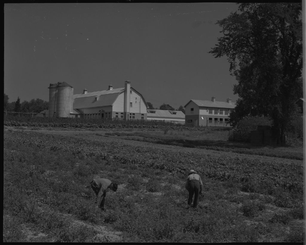 Le potager et l'ensemble de la ferme du Séminaire Montfortain à Papineauville, comté de Papineau