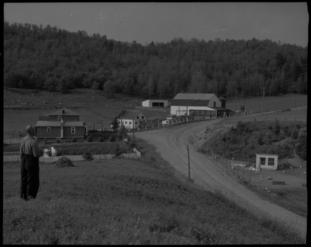 Vue de l'ensemble de la ferme de monsieur Henri Filion à Kiamika, comté de Labelle, 1953, Archives nationales à Québec, Fonds Ministère de la Culture et des Communications, (03Q,E6,S7,SS1,D2,P96897), Omer Beaudoin.