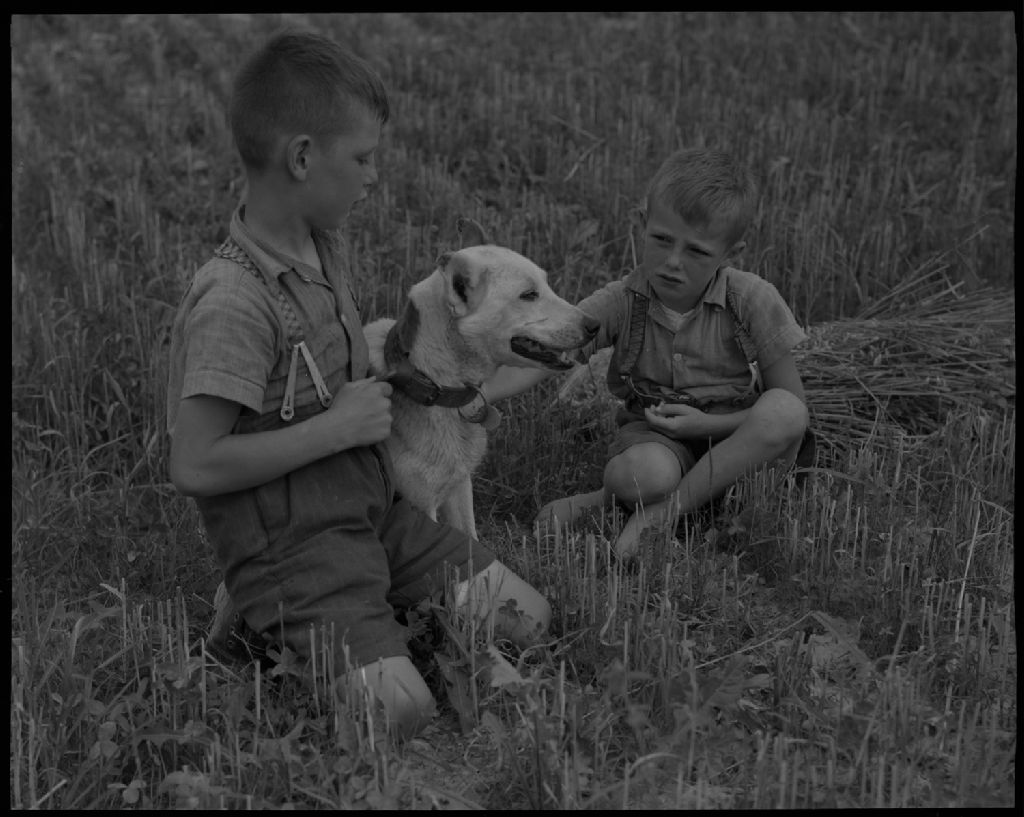 Jeunes Mayer et leurs chiens chez monsieur Éloi Mayer à Bearn, comté de Témiscamingue