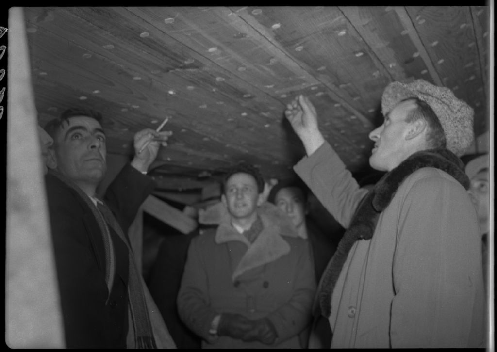 M. Jean Fréchette directeur des cours au Madelinots explique le travail de construction de navire à ses élèves, Chantier de construction de Gaspé.