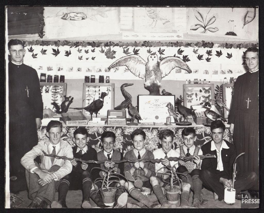 - Le dossier illustre des élèves du cercle des jeunes naturalistes de l'école Sainte-Brigide et un groupe d'élèves en compagnie de deux frères du Sacré-Coeur de l'école Saint-François-Solano dans Rosemont lors d'expositions scolaires