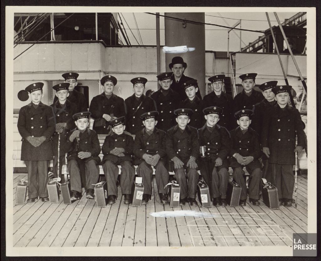 - Le dossier contient plusieurs portraits du groupe de choristes habituellement accompagnés de l¿abbé Schmitt et du docteur Georges Gruber. On les voit notamment à bord du paquebot Paris et du Dutchess of Atholl ainsi que dans les studios de La Presse