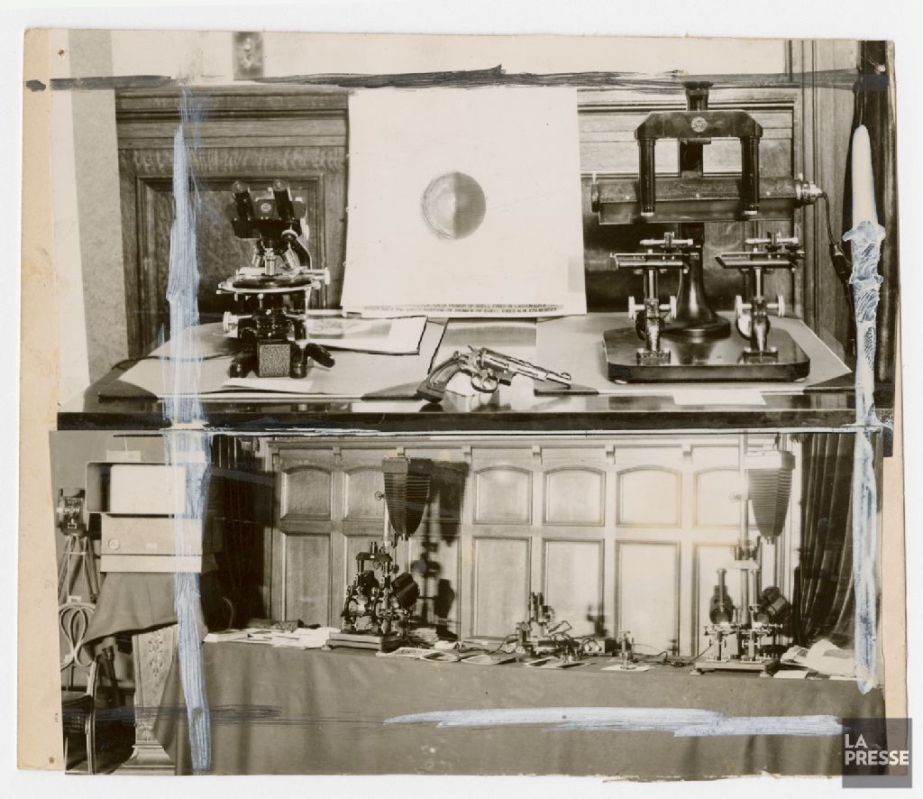 Laboratoire de police scientifique, Montréal, 1935, Archives nationales à Montréal, Fonds La Presse, (06M,P833,S3,D546), Photographe non identifié.