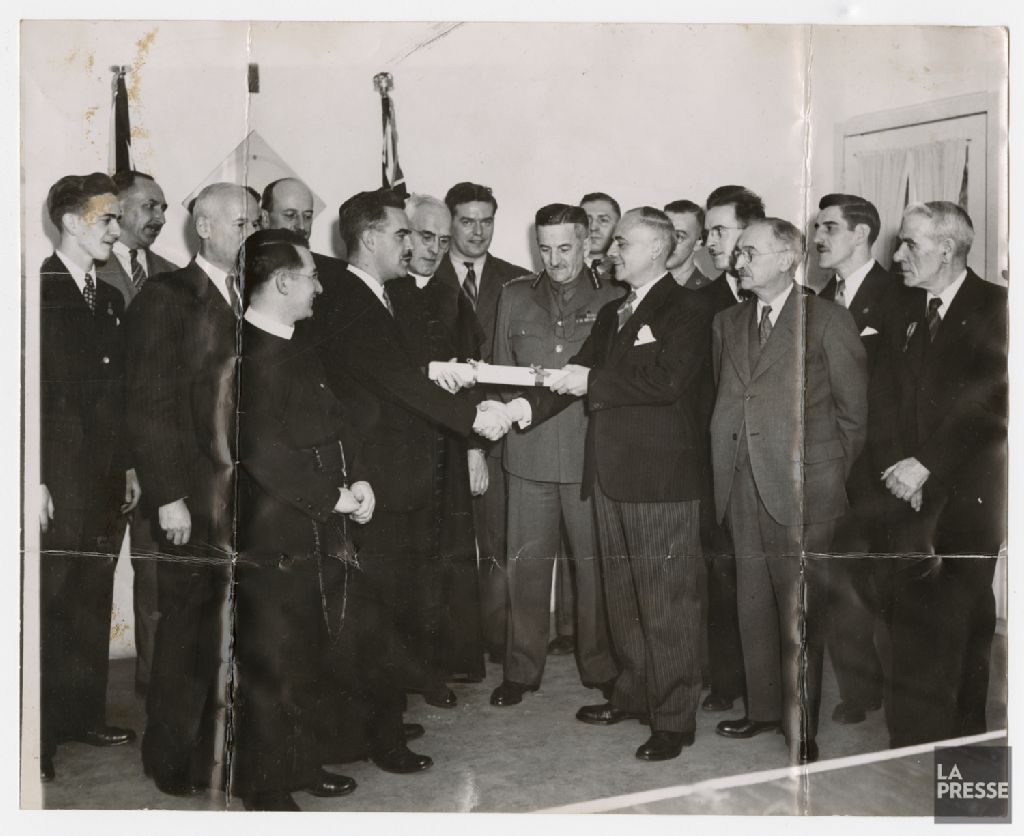 - Le dossier illustre des activités tenues par diverses succursales de la Légion dont une visite dans un hôpital militaire, une parade et l'ouverture du congrès provincial de 1947. Un document porte également une remise de la médaille d¿argent de la Ligue de sécurité industrielle, notamment à Omer Côté et James Adams Mathewson