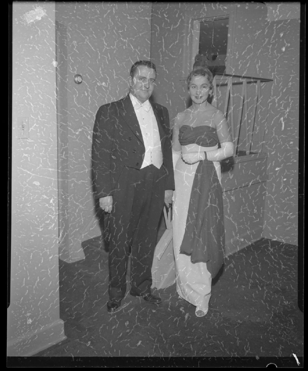 M. et Mme André Lamoureux au Bal des Petits souliers, 27 janvier 1958, Archives nationales à Gatineau, Fonds Champlain Marcil, (07H,P174,S1,D13383), Attribuée à Champlain Marcil.