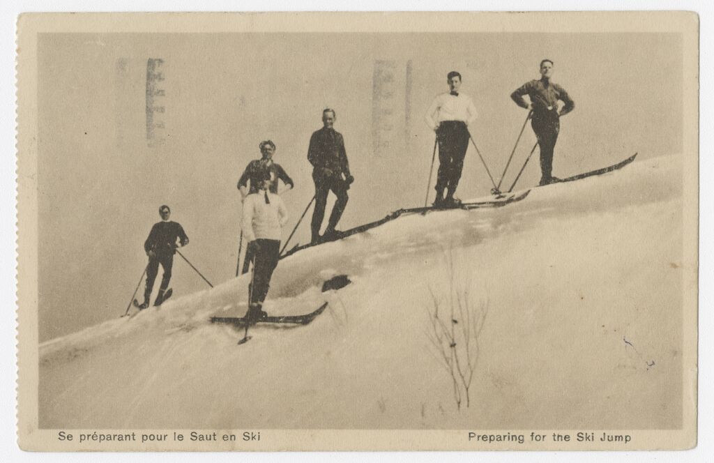 Se préparant pour le saut en ski = Preparing for the ski jump /