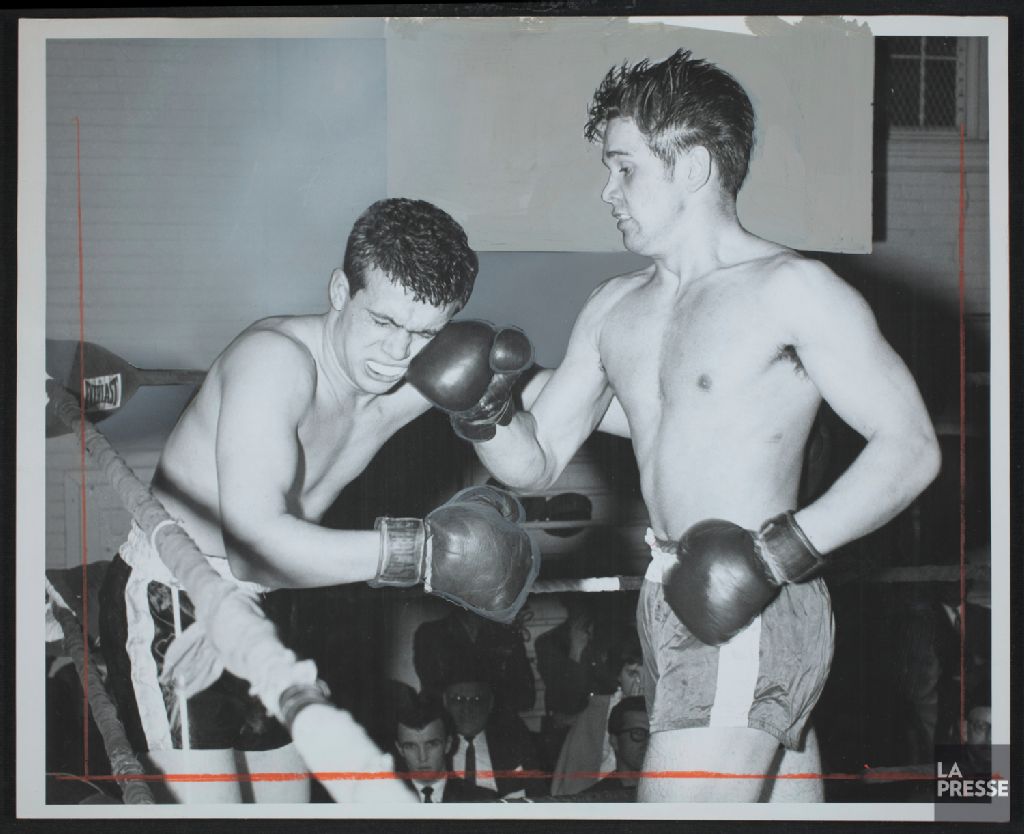 Michel Gouin, boxeur, 1962-1963, Archives nationales à Montréal, Fonds La Presse, (06M,P833,S2,D2366), Photographe non identifié.