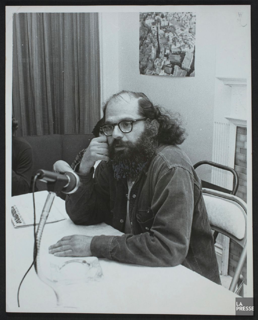 Allen Ginsberg, 1926-1997, 1969, Archives nationales à Montréal, Fonds La Presse, (06M,P833,S2,D2289), Roger St-Jean.