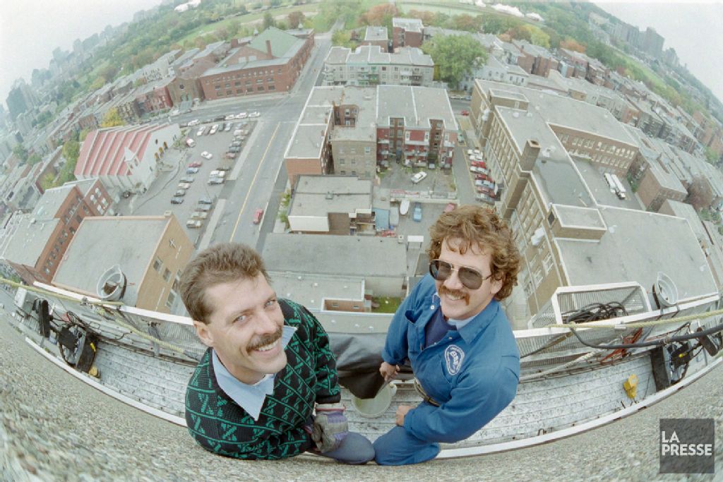 - Le dossier témoigne de l'arrivée du champion du monde Gianni Bugno en vue du Grand Prix cycliste de Montréal, et du métier de laveur de vitres en hauteur. Les documents montrent, entre autres, une vue en plongée de deux hommes sur une nacelle de la compagnie BSF inc. suspendue au quinzième étage d'un édifice.