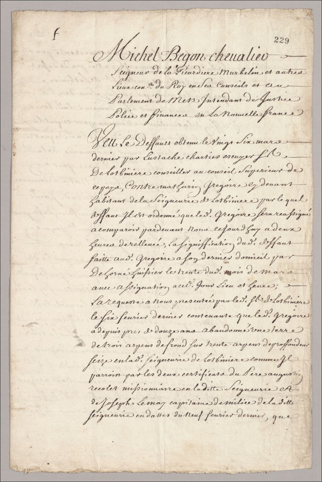 - Ordonnance de [Michel] Bégon, Intendant, qui réunit au domaine de la seigneurie de Lotbinière la terre de Mathurin Grégoire