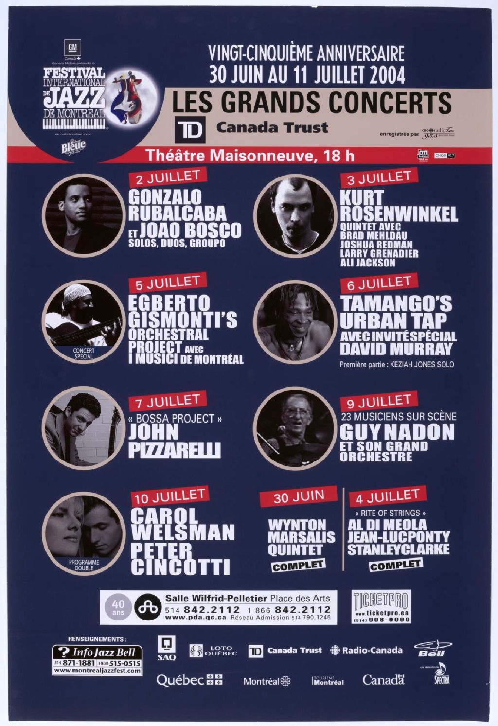 Les grands concerts Canada Trust vingt-cinquième anniversaire : Gonzalo Rubalcaba et Joao Bosco.... Kurt Rosenwinkel Quintet... Egberto Gismonti's Orchestral Project... Wynton Marsalis Quintet complet... Al Di Meola, Jean-Luc Ponty, Stanley Clarke complet