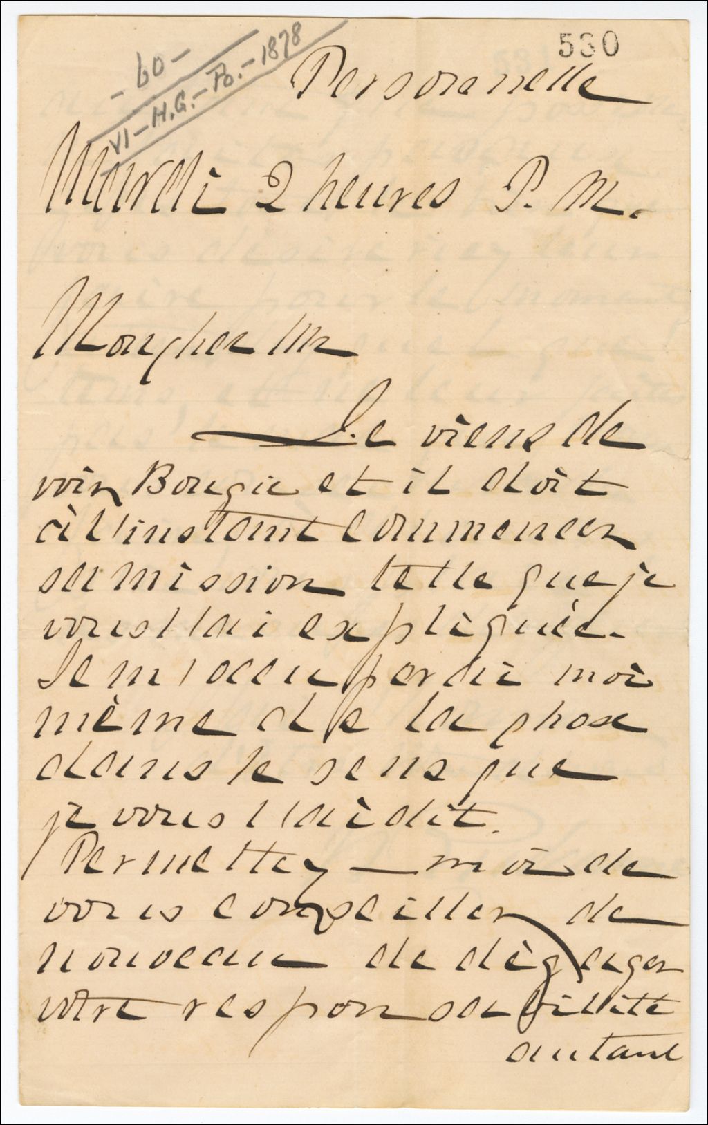 - Bougie doit commencer sa mission. Il lui conseille de dégager sa responsabilité autant que possible