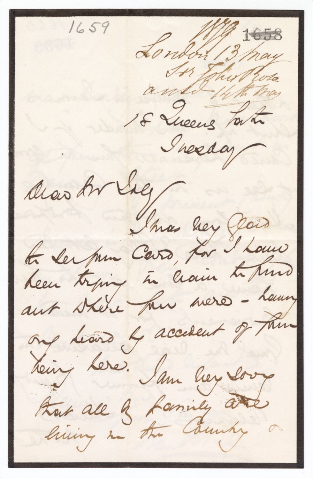Lettre de Sir John Rose à Henri-Gustave Joly