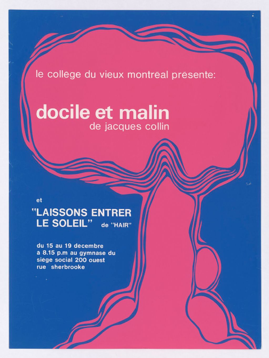 Le Collège du Vieux Montréal présente Docile et malin, de Jacques Collin et "Laissons entrer le soleil" de "Hair"