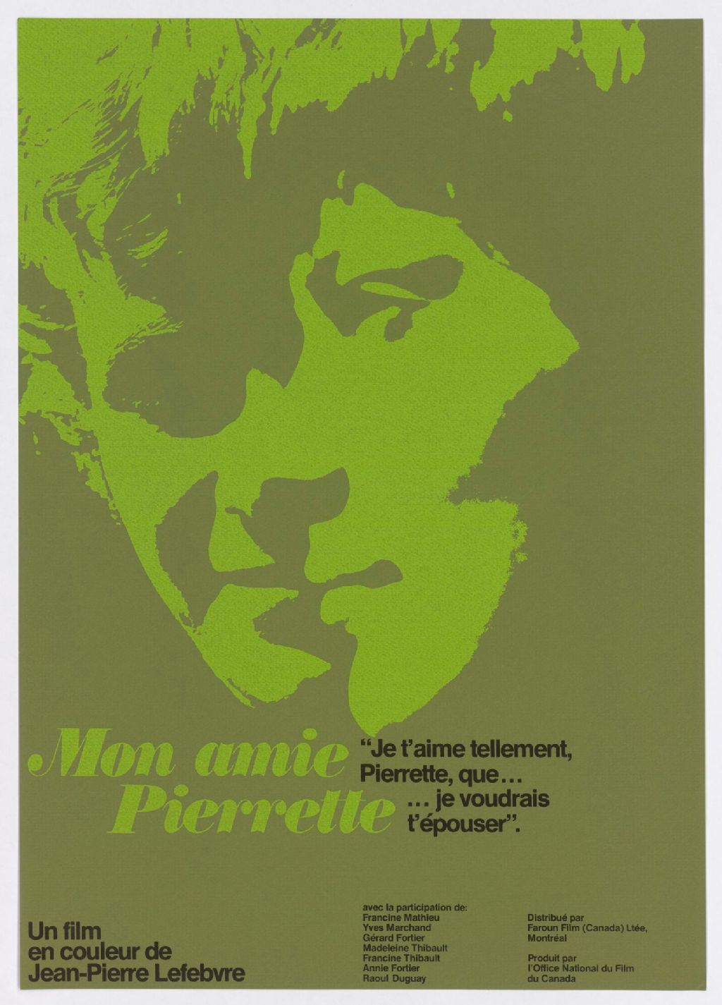 Mon amie Pierrette, un film en couleur de Jean-Pierre Lefebvre ... avec la participation de Francine Mathieu, Yves Marchand, Gérard Fortier ...