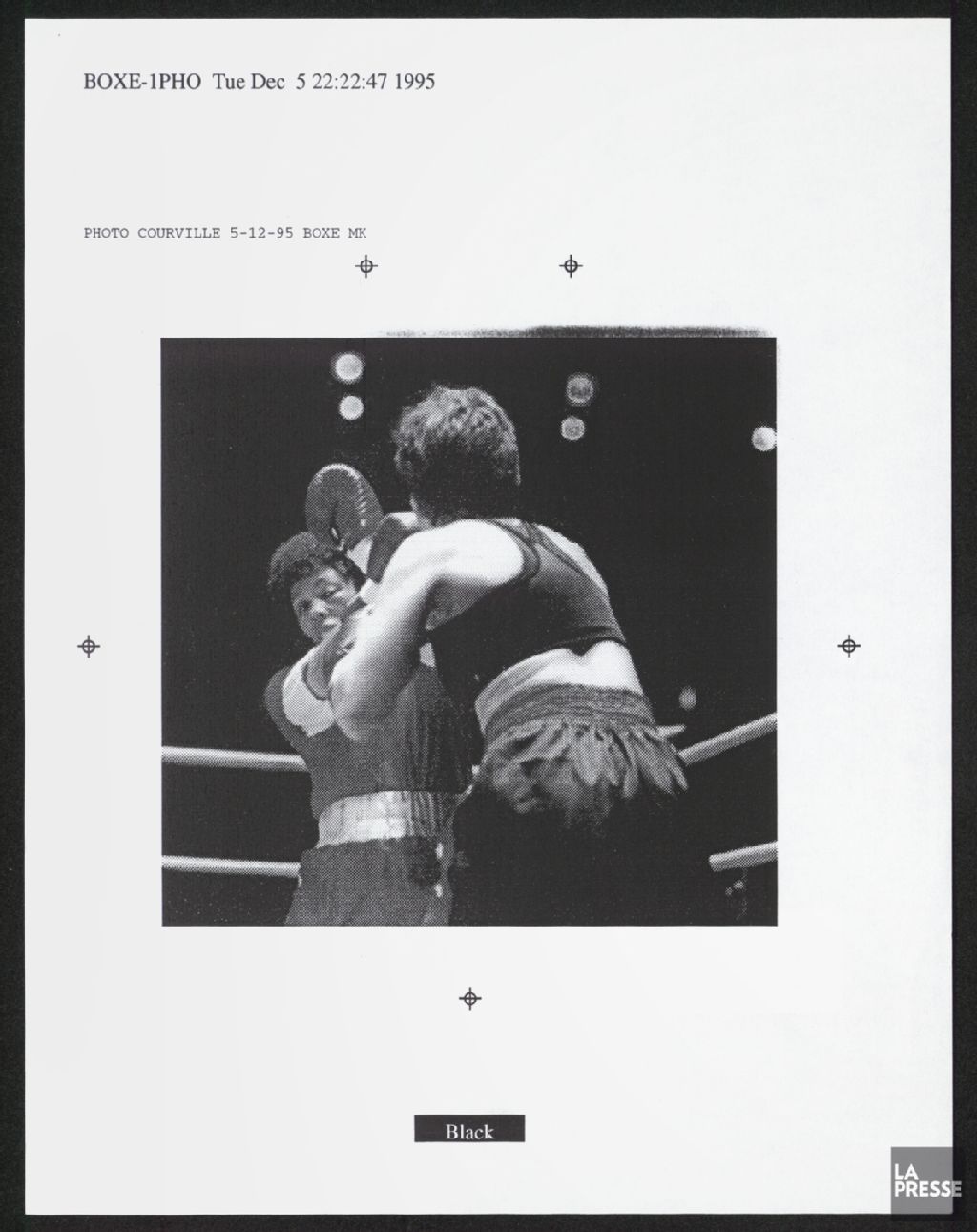 Boxe féminine, 1995, Archives nationales à Montréal, Fonds La Presse, (06M,P833,S4,D215), Denis Courville.