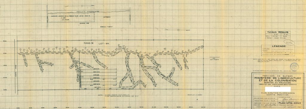 Plan de drainage souterrain pour la municipalité du canton de Clarendon, comté de Pontiac. Préparé pour le compte du Ministère de l¿Agriculture et de la Colonisation du Québec.