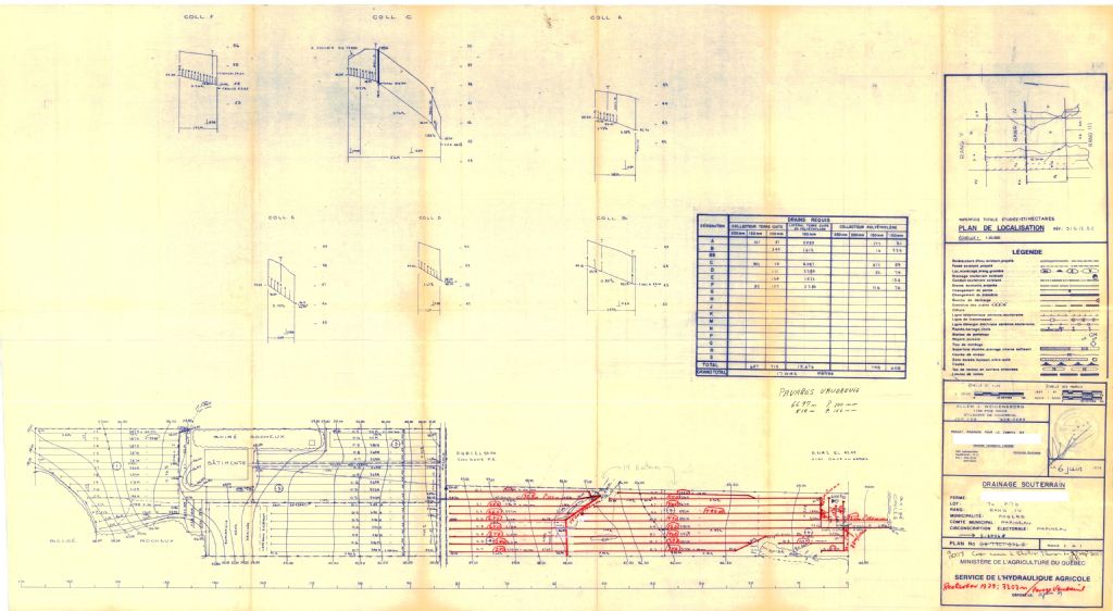Plan de drainage souterrain annoté pour la municipalité d'Angers, comté de Papineau. Préparé pour le compte du Ministère de l¿Agriculture du Québec.