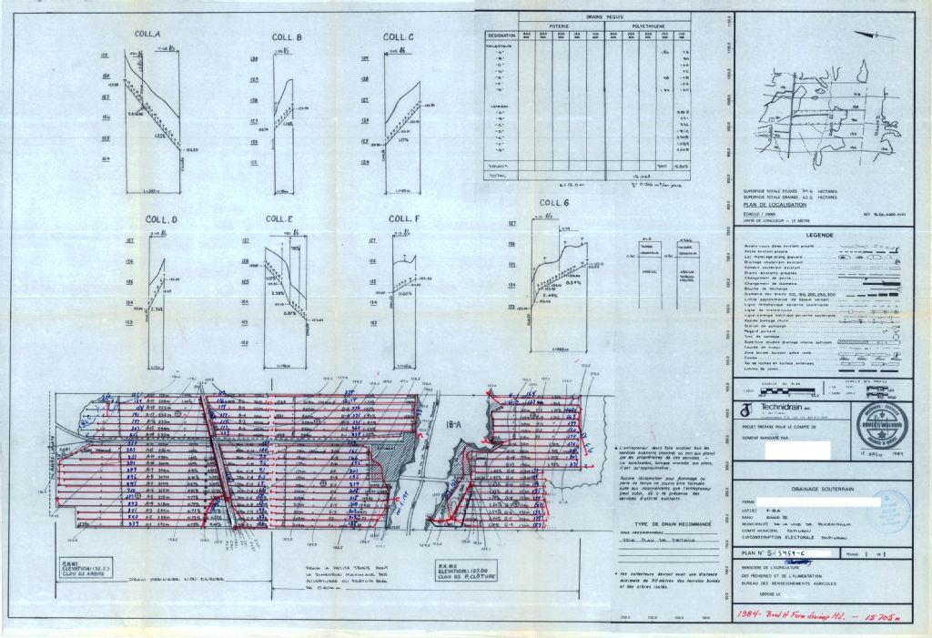 Plan de drainage souterrain annoté pour la municipalité de Buckingham, comté de Papineau. Préparé pour le compte du Ministère de l¿Agriculture, des Pêcheries et de l'Alimentation du Québec.